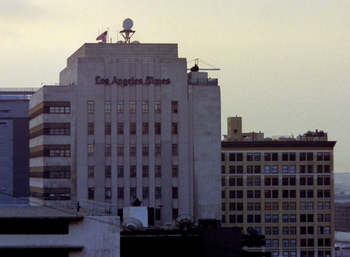 لوس أنجلس تايمز (وتعرف أيضا باسم ال اي تايمز) هي جريدة يومية تطبع في لوس أنجلس, كاليفورنيا وتوزع في جميع أنحاء غرب الولايات المتحدة.وهي ثاني أكبر صحيفة ورابع صحيفة من حيث نسبة التوزيع في الولايات المتحدة.[3] وسجل معدلات توزيعها اليومية في اكتوبر 2008 نسبة 739,000 نسخة.[4] down from a peak of 1.1 million.[5] In addition to its print product, the Times also publishes a 24-hour news Web site at latimes.com.