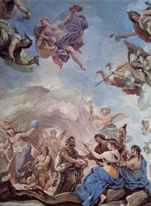 Giordano has been criticized as being a prolific trader of all styles, and master of none. He has been viewed as a proto-Tiepolo, reanimating that grand manner of Cortona in a style that would brighten with Tiepolo.