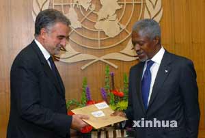 أوكامپو مع السكرتير السابق ي الأمم المتحدة كوفي عنان