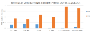 ترجع درجات الدقة المختلفة بين أدوات 0.33 NA إلى خيارات الإضاءة المختلفة. على الرغم من إمكانية وصول البصريات إلى دقة أقل من 20 نانومتر، فإن الإلكترونات الثانوية في المقاومة تحد بشكل عملي الدقة إلى حوالي 20 نانومتر.[41]