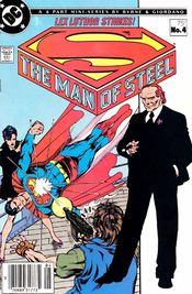 The character has traditionally lacked superpowers or a dual identity and typically appears with a bald head.[2] He periodically wears his Warsuit, a high-tech battle suit giving him enhanced strength, flight, advanced weaponry, and other capabilities.[3] The character was originally introduced as a diabolical recluse, but during the Modern Age, he was reimagined by writers as a devious, high-profile industrialist, who has crafted his public persona in order to avoid suspicion and arrest. Creators based this depiction in part on real-life tycoon Donald Trump.[4] He is well known for his philanthropy, donating vast sums of money to Metropolis over the years, funding parks, foundations, and charities.[5]
