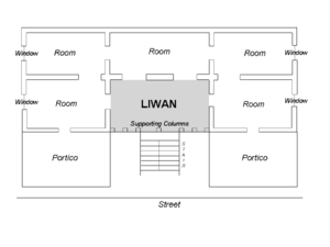 على كلا جانبين اليوان, عادة ما تقع غرفتين متناظرتين.