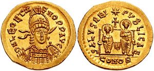- ^ Grierson, Philip; Mays, Melinda (1992). Catalogue of Late Roman Coins in the Dumbarton Oaks Collection and in the Whittemore Collection: From Arcadius and Honorius to the Accession of Anastasius (in الإنجليزية). Washington, D.C.: Dumbarton Oaks Research Library and Collection. pp. 172–173. ISBN 978-0-88402-193-3.