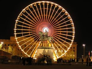 تمثال لويس الرابع عشر ، مع عجلة فريس في الخلفية في Bellecour