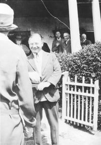 When Chamberlain announced his flight to Munich to the cheers of the House, Amery was one of only four members who remained seated (the others were Churchill, Anthony Eden, and Harold Nicolson).[12]