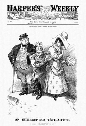 احباط صفقة "واحدة بواحدة". غلاف مجلة هارپرز البريطانية في 1 يوليو 1905.