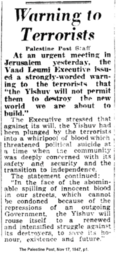 - A. M. Rosenthal, "Palestine Termed 'Hottest' Case To Be Submitted for U.N. Action" The New York Times, 15 February 1947, pp. 5.