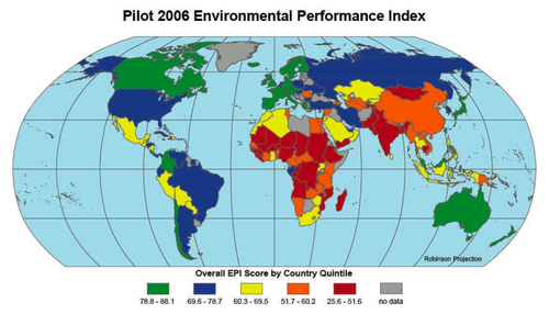 has generic name (help) - ^ Yale Center for Environmental Law & Policy / Center for International Earth Science Information Network at Columbia University. "Pilot 2006 Environmental Performance Index". Retrieved 2007-06-17.