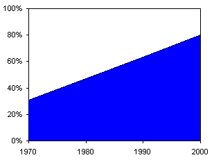 أفضل تقدير لتقاسم الشعوب لمياه الشرب في البلدان النامية 1970–2000.