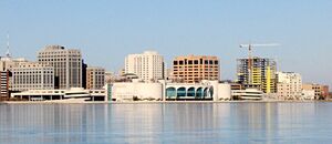 The Capitol Square Area is Madison's central business district. It is home to high rise apartments, restaurants, and shopping outlets. It contains several museums and is home to the Wisconsin State Capitol building and the Monona Terrace.[43] The capitol square holds a number of public events for the city of Madison including the Dane County Farmers' Market, Concerts on the Square, Taste of Madison and Art Fair on the Square. The area's nightlife is served by several bars and live music venues.[44]