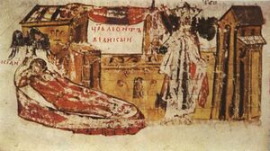 Death of Marcian, who is succeeded by Leo I (right). Scene from the 12th century Manasses Chronicle.