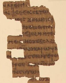 The Gospel of Mary is the only surviving apocryphal text named after a woman.[10] It contains information about the role of women in the early church.[10][43] The text was probably written over a century after the historical Mary Magdalene's death.[10] The text is not attributed to her and its author is anonymous.[10] Instead, it received its title because it is about her.[10] The main surviving text comes from a Coptic translation preserved in a fifth-century manuscript (Berolinensis Gnosticus 8052,1) discovered in Cairo in 1896.[10][8][43] As a result of numerous intervening conflicts, the manuscript was not published until 1955.[10] Roughly half the text of the gospel in this manuscript has been lost;[10][44] the first six pages and four from the middle are missing.[10] In addition to this Coptic translation, two brief third-century fragments of the gospel in the original Greek (P. Rylands 463 and P. Oxyrhynchus 3525) have also been discovered, which were published in 1938 and 1983 respectively.[8][43]