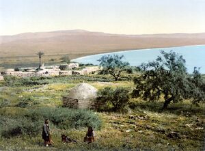 Mary Magdalene's epithet Magdalene (ἡ Μαγδαληνή; literally "the Magdalene") most likely means that she came from Magdala,[8][10][أ] a village on the western shore of the Sea of Galilee that was primarily known in antiquity as a fishing town.[8][10][9] Mary was, by far, the most common Jewish given name for girls and women during the first century,[8][ب][13] so it was necessary for the authors of the gospels to call her Magdalene in order to distinguish her from the other women named Mary who followed Jesus.[8] Although the Gospel of Mark, reputed by scholars to be the earliest surviving gospel, does not mention Mary Magdalene until Jesus's crucifixion,[8] the Gospel of Luke 8:2–3[14] provides a brief summary of her role during his ministry:[8]