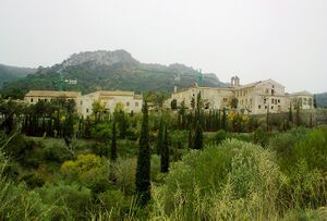The Cardó Monastery, also known as Sant Hilari de Cardó or Desert de Cardó, was a large monastery located in the Cardó Valley (Vall de Cardó), a deep valley in these mountains. It was closed down due to the Ecclesiastical Confiscations of Mendizábal in 1835 during Isabella II of Spain's rule. The Desamortización or secularization of the place brought monastic life in the monastery, and the many hermitages surrounding it, to an end. The monastery can be reached by a paved road from Rasquera.