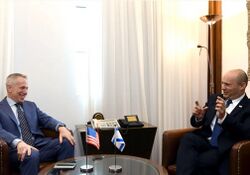 رئيس الوزراء الإسرائيلي نفتالي بنت يلتقي "السفير الأمريكي المؤقت لدى إسرائيل" مايكل راتني، في القدس، 30 يونيو 2021.[2] |