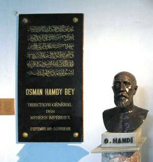 Appointed to the role in 1881, the first curator and founder of the museum was Osman Hamdi Bey, Painter, Archeologist and son of İbrahim Edhem Pasha, an Ottoman Grand Vizier. An accomplished artist, in 2019 his painting Girl Reading the Quran sold for 6.3 million British pounds, making it the most expensive Turkish painting at that time.[6]