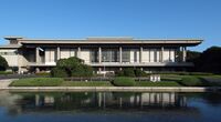 Designed by Okada Shinichirō, the hall was built in 1928 as part of Kuroda's bequest to use part of his fortune "to fund projects to promote art".[32] In 1930, it became the headquarters of the Art Research Institute, which became the Tokyo Research Institute for Cultural Properties. The TRICP moved in 2000, with the Kuroda Memorial Hall reopening as a public gallery the next year. In 2007, its administration was transferred to the Tokyo National Museum, which renovated it before reopening it on 2 January 2015. Admission was originally restricted to two-week periods in January, Spring, and Autumn[30][33][31] but it is presently open whenever the main museum is.[32]