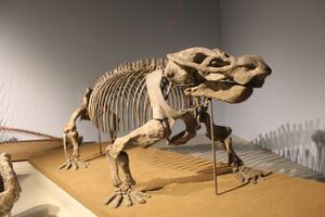 Evolving Planet follows the evolution of life on Earth over 4 billion years. The exhibit showcases fossils of single-celled organisms, Permian synapsids, dinosaurs, extinct mammals, and early hominids.[36] The Field Museum's non-mammalian synapsid collection consists of over 1100 catalogued specimens, including 46 holotypes. The collection of basal synapsids includes 29 holotypes of caseid, ophiacodontid, edaphosaurid, varanopid, and sphenacodontid species – approximately 88% of catalogued specimens.[37]