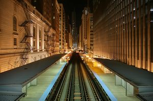 Northward view of Chicago 'L' from Adams/Wabash in Chicago Loop