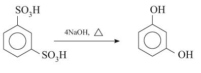 2- الريزورسينول (1،3 ثنائي هدروكسي البنزن) resorcinol: يحضر بالصهر القلوي لحمض 1،3 بنزن ثنائي سلفونيك: