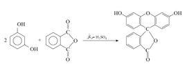 محلول الفلوريسين لا لون له في الوسط الحمضي، ويعطي في الوسط القلوي تألقاً أخضر (فلورة) fluorescence، لذلك يستعمل مشعراً في التحليل الحجمي.