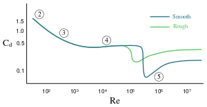 •5: post-critical separated flow, with a turbulent boundary layer.
