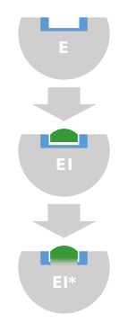 Slow-tight inhibition occurs when the initial enzyme–inhibitor complex EI undergoes conformational isomerism (a change in shape) to a second more tightly held complex, EI*, but the overall inhibition process is reversible. This manifests itself as slowly increasing enzyme inhibition. Under these conditions, traditional Michaelis–Menten kinetics give a false value for Ki, which is time–dependent.[3] The true value of Ki can be obtained through more complex analysis of the on (kon) and off (koff) rate constants for inhibitor association with kinetics similar to irreversible inhibition.[20]