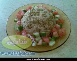 - يقدم الى جانب المجدرة أنواع المخللات والسلطات حسب الذوق