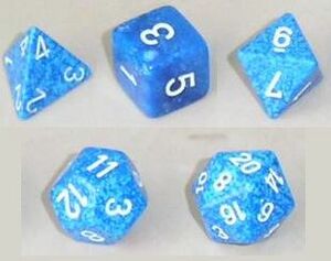 Platonic solids are often used to make dice, because dice of these shapes can be made fair. 6-sided dice are very common, but the other numbers are commonly used in role-playing games. Such dice are commonly referred to as dn where n is the number of faces (d8, d20, etc.); see dice notation for more details.