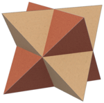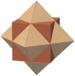 These coordinates reveal certain relationships between the Platonic solids: the vertices of the tetrahedron represent half of those of the cube, as {4,3} or CDel node 1.pngCDel 4.pngCDel node.pngCDel 3.pngCDel node.png, one of two sets of 4 vertices in dual positions, as h{4,3} or CDel node h.pngCDel 4.pngCDel node.pngCDel 3.pngCDel node.png. Both tetrahedral positions make the compound stellated octahedron.