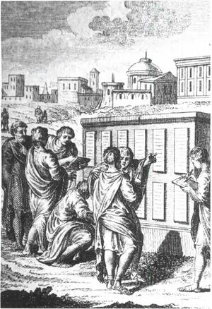G. W. Botsford distinguishes these two types of assemblies in terms of their function. In his theory, a comitia refers to an electoral assembly, and a concilium would then be a legislative or judicial assembly.[27] Although the theories put forth by Botsford and Felix are different, passages from Cicero and Livy can be found to support both.[27] A comitia appears to designate organized voting assemblies, and a concilium often indicates a meeting of a certain group which is exclusive in some sense. The Concilium Plebis is definitively a political assembly.[27]