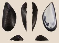 Isolated shells | A marine oyster of the family Malleidae | ![]() Example of extant member of the genus (from Cape Verde) |