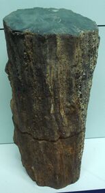 Fossil wood | Conifer wood of the family Hirmeriellaceae, considered to be a potential synonym of the genus Brachyoxylon | Example of petrified wood trunk of the same genus (from an unknown location) |