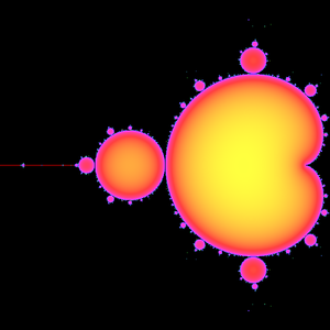 This image was rendered with the escape time algorithm. Notice the very obvious "bands" of color