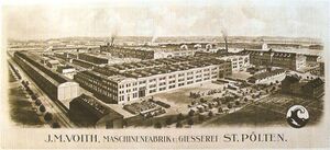 The first subsidiary, Maschinenfabrik J. M. Voith, built in 1904 in St. Pölten, Austria, circa 1910.