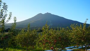 Mount Iwaki and apple blossom