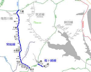 Lines map Kantō Railway, Tsukuba Railway (suspended 1987), and others