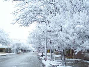 Winter temperatures average a high of 15 إلى 18 °C (59 إلى 64 °F) and lows of 2 إلى 4 °C (36 إلى 39 °F), but marked variations are possible: northerly winds can push values up to 30 °C (86 °F) and southerly winds can keep afternoon temperatures at 6 °C (43 °F) and bring nighttime temperatures to −5 °C (23 °F). The air is often humid in winter, and thick fog is very common. Snowfall is very rare, almost unheard of in the northeast, but snowstorms can occur: in 2007, between 10 و 20 cm (4 و 8 in) covered a significant part of the region, and temperatures plummeted to -9 °C in most areas (16F). Spring is very variable, alternating between very intense heat waves and cool weather periods with severe thunderstorms, hail and strong winds. Total precipitation is over 850 mm (33 in) along the border with Santa Fe and diminishes to about 700 mm (28 in) in the west, reaching a minimum of about 600 mm (24 in) in the southernmost part of the province. This climate allows eastern Córdoba to be the nation's main producer of soybeans and peanuts, and a large producer of maize and dairy products.