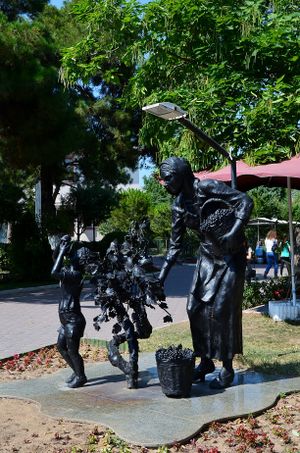 تمثال امرأة تحصد الكروم وبرفقتها طفل في وسط مدينة قرقلر إلي.