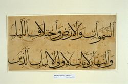 صورة مصحف (الآيات 190-191 من سورة آل عمران) مكتوب بالخط المحقق، يعود إلى القرن الخامس عشر الميلادي