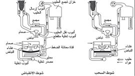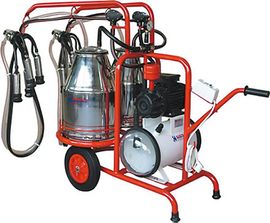 - جهاز الحلابة: يُحدد نوع جهاز الحلابة حسب مبدأ عمله وكيفية الحلب كما يأتي: جهاز حلابة ثنائي الشوط (الشكل 5) وثلاثي الشوط وجهاز حلابة نصفي لحلب نصفي الضرع بالتعاقب. ويتكون جهاز الحلابة من الأجزاء الآتية: