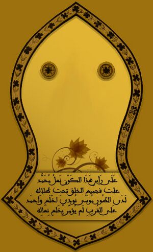 | «أحمد، نبي التّوبة، نبي الرّحمة، نبي المرحمة، نبي الملحمة، الرّحمة المهداة، سيد ولد آدم، حبيب الرّحمن، المختار، المُصطفى، المُجتبى، الصّادق، المصدوق، الأمين، صاحب الشّفاعة والمقام المحمود، صاحب الوسيلة والفضيلة والدّرجة الرّفيعة، صاحب التاج والمعراج، إمام المُتقين، سيّد المرسلين، قائد الغر المحجلين، النبي الأمّي، رسول الله، خاتم الأنبياء، الرّسول الأعظم، السراج المنير، النور،[1][2] الرّؤوف الرّحيم بالمُؤمنين، العروة الوثقى» | ||