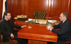محمدوڤ (يمين) في لقاء بالرئيس الروسي مدڤييدڤ في 2008.