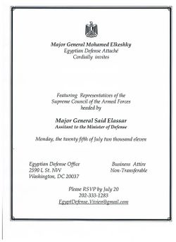 - ^ "هذه رسالة للمصريين المقيمين في الولايات المتحدة، بخصوص زيارة اللواء محمد العصار لواشنطن". فيسبوك. 2011-07-21. Retrieved 2011-07-23.