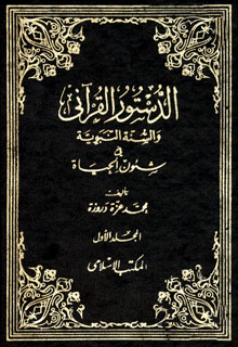 - "الدستور القرآني والسنة النبوية في شؤون الحياة"، وطُبع في مجلدين كبيرين. تصدر هذا العمل الكبير مؤلفات دروزة في المجال الإسلامي. أوضح في هذا الكتاب ما احتواه القرآن والسنة النبوية من نظم لمختلف شؤون الحياة، ويمثل هذا المؤلف تحولاً كبيراً في حياة مؤلفه بعد أن استوفى دراسات التاريخ القومي وقضايا المجتمع العربي، حيث أدرك أهمية التماس منهج القرآن والالتزام به لتحقيق أهداف الأمة العربية .
