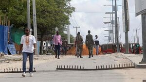 كما هيمن التوتر على مقديشو، حيث أغلق مقاتلون موالون للمعارضة المنافذ إلى بعض الأحياء غداة مواجهات مع الجيش على خلفية الأزمة بشأن تمديد ولاية الرئيس محمد عبد الله محمد. وتم تقييد الحركة على المحاور الرئيسية للعاصمة ونصب حواجز ليلاً على الطرق المؤدية إلى معاقل المعارضة، بينما انتشر مسلحون وعربات مزودة بأسلحة رشاشة، بحسب شهود.