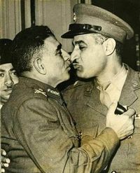 يرى اللواء أ ح محمد نحيب ويجانبه جمال عبدالناصر بصافح الأمير محمد على ولى العهد.