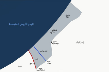 ![]() محور موراج يقسم قطاع غزة بين خان يونس ورفح، ممتداً في الاتجاه الشمال الغربي وصولاً إلى البحر المتوسط. | |
