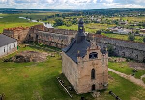 - Medzhybizh Fortress screened from a drone.