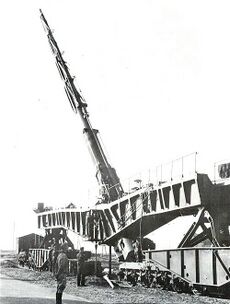 ![]() The German Paris Gun, also known as the Kaiser Wilhelm Gun, was the largest gun of World War I. In 1918, the Paris Gun shelled Paris from 120 km (75 mi) away. | |
